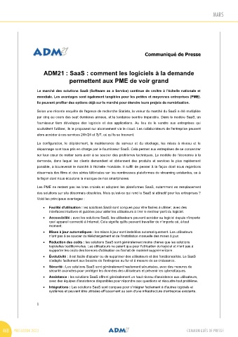 Les PME ne restent pas les bras croisés et adoptent les plateformes SaaS, notamment en remplacement email : perrine.chapuis@ccommunication.fr www.adm21.fr