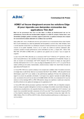 des installations, la mesure du volume et la construction de TIC. ADM21 et Vecow élargissent encore les solutions Edge