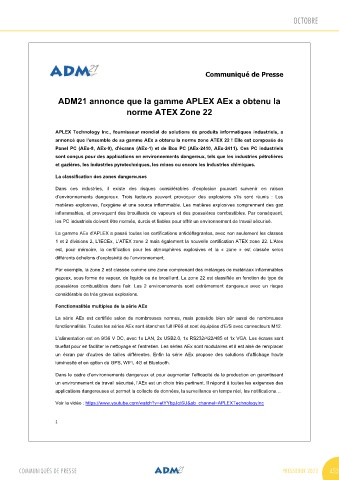 transparente, mais créons également de nouvelles opportunités commerciales. Ce partenariat accélère le ADM21 annonce que la gamme APLEX AEx a obtenu la