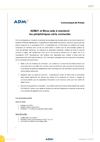 ADM21 et Moxa aide à maintenir devenant ainsi le fournisseur leader de solutions de connectivité série. En tant que partenaire série de