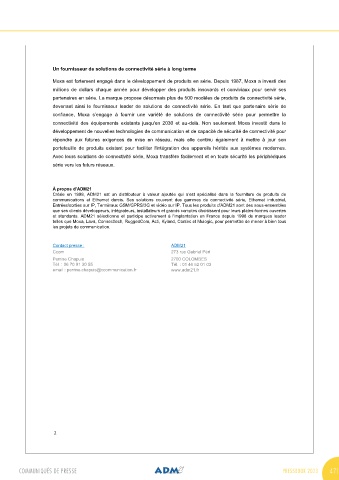 nouveaux produits pour les applications émergentes ou de nouveaux pilotes pour une variété de email : perrine.chapuis@ccommunication.fr www.adm21.fr
