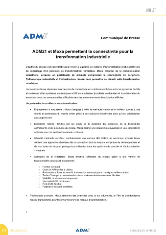 ADM21 et Moxa permettent la connectivité pour la • Expertise verticale de l'industrie : Moxa fournit des solutions de mise en réseau, de connectivité