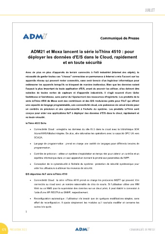 Azure/AWS/Alibaba intégrée. De plus, elle rationalise les opérations avec la capacité OPC UA vers email : perrine.chapuis@ccommunication.fr www.adm21.fr