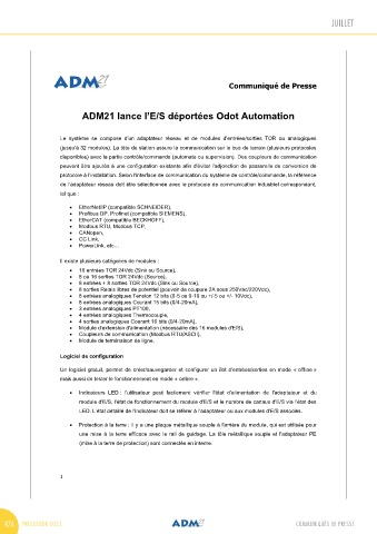 • 8 ou 16 sorties TOR 24Vdc (Source), Contact presse : ADM21