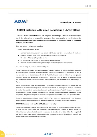 ADM21 distribue la Solution domotique PLANET Cloud Un contrôle facile de la maison