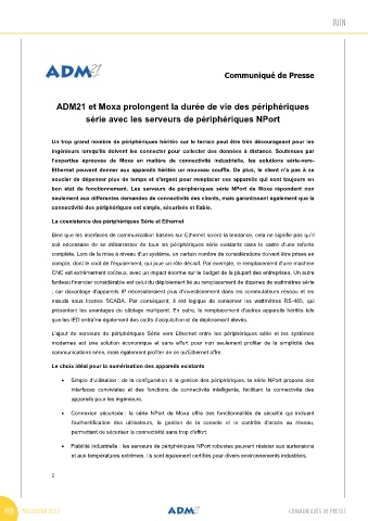 l’expertise éprouvée de Moxa en matière de connectivité industrielle, les solutions série-vers- Créée en 1998, ADM21 est un distributeur à valeur ajoutée qui s'est spécialisé dans la fourniture de produits de