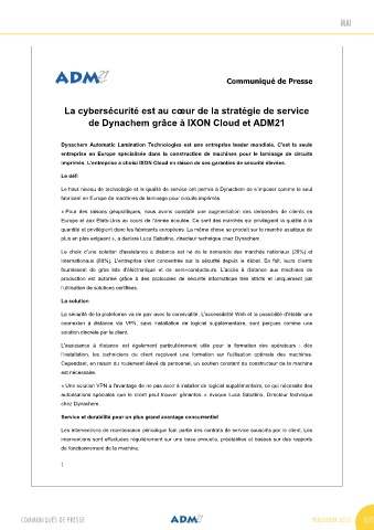 démontrent ce qu'ils réalisent avec leurs machines. La cybersécurité est au cœur de la stratégie de service