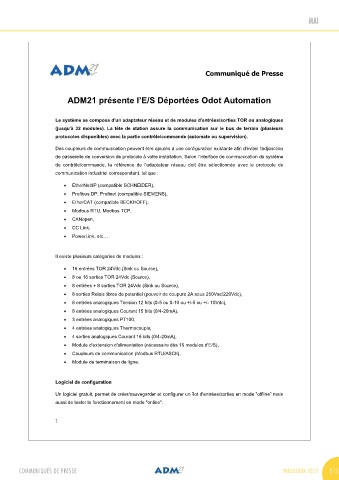 produits qui peut répondre à toutes les demandes de connectivité. ADM21 présente l’E/S Déportées Odot Automation