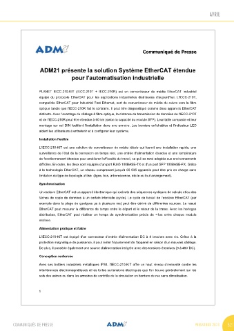 et standards. ADM21 sélectionne et participe activement à l'implantation en France depuis 1998 de marques leader à la technologie EtherCAT, un réseau comprenant jusqu'à 65 535 appareils peut être pris en charge sans