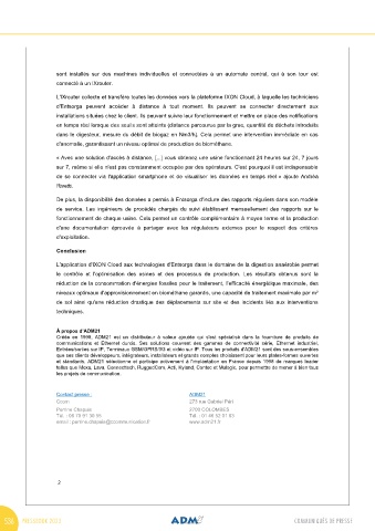 installations situées chez le client. Ils peuvent suivre leur fonctionnement et mettre en place des notifications ADM21 et IXON présenteront la première plateforme IIoT