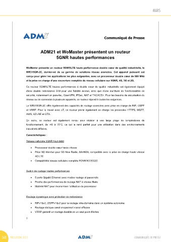 En outre, ce routeur est également conçu pour résister à une large plage de températures de Contact presse : ADM21