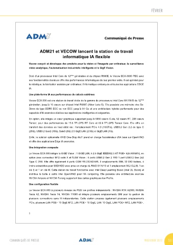 que ses clients développeurs, intégrateurs, installateurs et grands comptes choisissent pour leurs plates-formes ouvertes ADM21 et VECOW lancent la station de travail