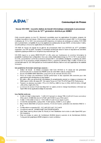 d’utilisation de 16 V à 160 V, de connecteurs M12 étanches et d’options de stockages amovibles, l’IVX-1000 Entrées/sorties sur IP, Terminaux GSM/GPRS/3G et vidéo sur IP. Tous les produits d'ADM21 sont des sous-ensembles