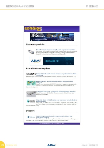 ELECTRONIQUE-MAG NEWSLETTER                                                                11 DÉCEMBRE                 INDUSTRIE-MAG NEWSLETTER                                                                    11 DÉCEMBRE
