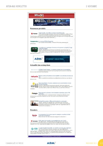 INDUSTRIE-MAG NEWSLETTER 3 NOVEMBRE MTOM-MAG NEWSLETTER 3 NOVEMBRE 614 PRESSBOOK 2023 COMMUNIQUÉS DE PRESSE COMMUNIQUÉS DE PRESSE PRESSBOOK 2023 615