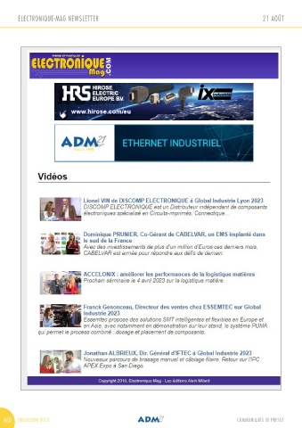 ELECTRONIQUE-MAG NEWSLETTER 21 AOÛT INDUSTRIE-MAG NEWSLETTER 21 AOÛT 660 PRESSBOOK 2023 COMMUNIQUÉS DE PRESSE COMMUNIQUÉS DE PRESSE PRESSBOOK 2023 661