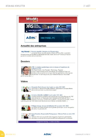 MTOM-MAG NEWSLETTER 21 AOÛT ELECTRONIQUE-MAG NEWSLETTER 17 AOÛT 662 PRESSBOOK 2023 COMMUNIQUÉS DE PRESSE COMMUNIQUÉS DE PRESSE PRESSBOOK 2023 663