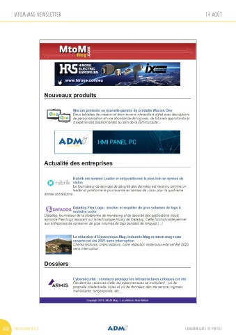 MTOM-MAG NEWSLETTER 14 AOÛT ELECTRONIQUE-MAG NEWSLETTER 10 AOÛT 668 PRESSBOOK 2023 COMMUNIQUÉS DE PRESSE COMMUNIQUÉS DE PRESSE PRESSBOOK 2023 669