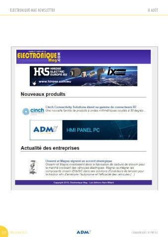 ELECTRONIQUE-MAG NEWSLETTER 8 AOÛT INDUSTRIE-MAG NEWSLETTER 8 AOÛT 672 PRESSBOOK 2023 COMMUNIQUÉS DE PRESSE COMMUNIQUÉS DE PRESSE PRESSBOOK 2023 673