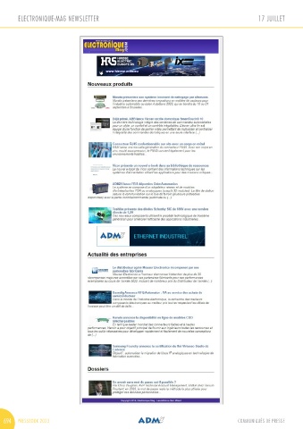 ELECTRONIQUE-MAG NEWSLETTER                                                                    17 JUILLET              INDUSTRIE-MAG NEWSLETTER                                                                       17 JUILLET